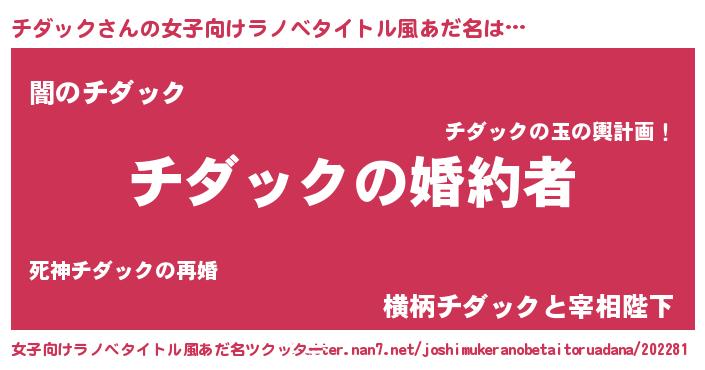 | 意味不明あだ名 | 『チダックフォーエバー』『自称チダック』 |