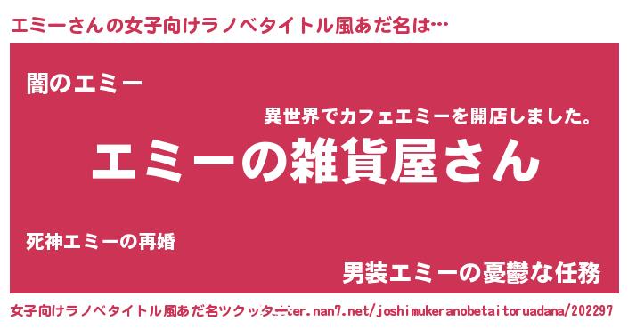 | 意味不明あだ名 | 『エミーフォーエバー』『自称エミー』 |