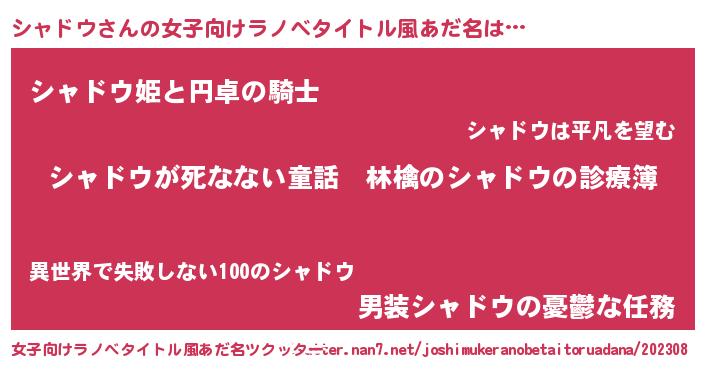 | 男性向けラノベタイトル風あだ名 | 『魔弾の王とシャドウ』 |