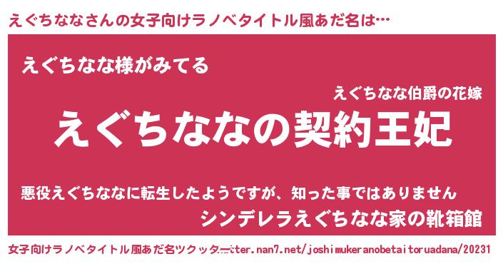 | 意味不明あだ名 | 『永久保存えぐちなな』『自称えぐちなな』 |