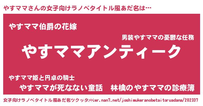 | 意味不明あだ名 | 『自称やすママ』『やすママフォーエバー』 |