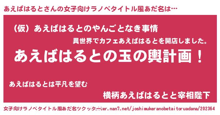 | ヘコむあだ名 | 『あえにー』『あえばはると(笑)』 |