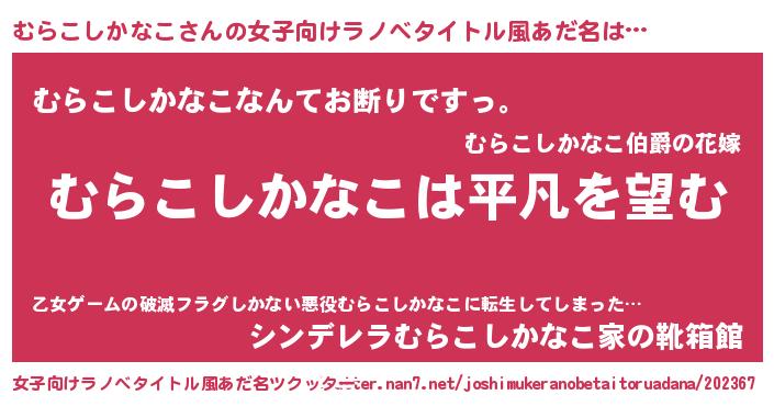 | 男性向けラノベタイトル風あだ名 | 『ダンジョンにむらこしかなこを求めるのは間違っているだろうか』 |