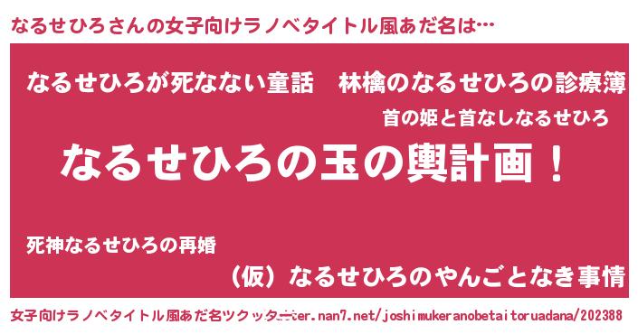 | ヒーロー風カッコイイあだ名 | 『仮面ナルダー』『スーパーナルセヒロ』 |