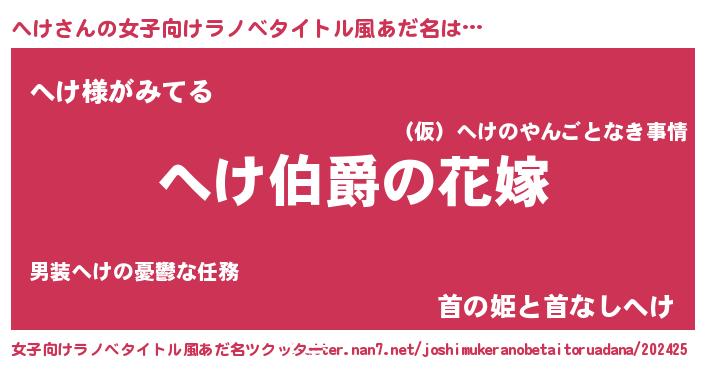 | 2回繰り返すあだ名 | 『へへけけ』『ぬれぬれ』『へけへけ』 |