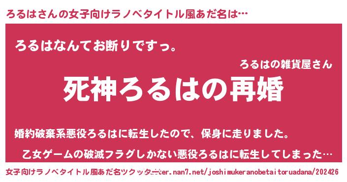 | 男性向けラノベタイトル風あだ名 | 『ノーゲーム・ノーロルハ』 |