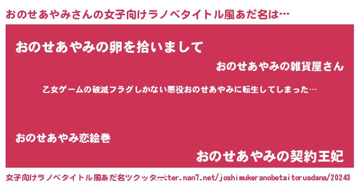 | 胡散臭い通販商品みたいなあだ名 | 『世界中を虜にした世界で10本だけ現存している希少なブランデー…その名も「おのせあやみ」』 |