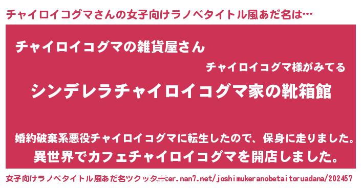 | 胡散臭い通販商品みたいなあだ名 | 『世界が平和になる高級そうな壺…その名も「チャイロイコグマ」』 |