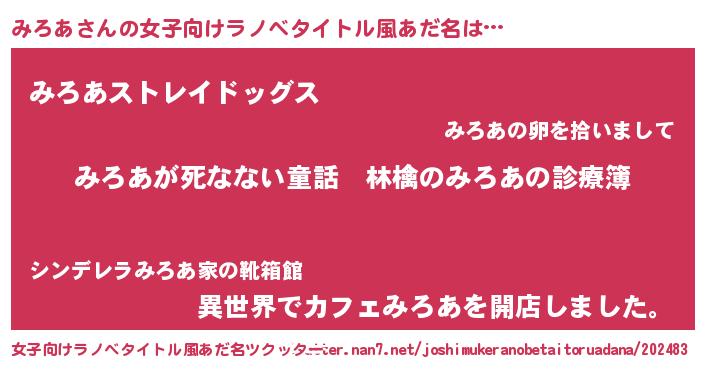 | 意味不明あだ名 | 『住所不定無職みろあ(12歳)』『自称みろあ』 |