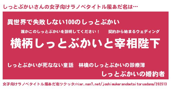 | 男性向けラノベタイトル風あだ名 | 『しっとぶかいに滅ぼされるだけの簡単なお仕事です』 |