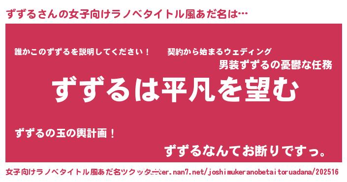 男性向けラノベタイトル風あだ名 | 『ダンジョンにずずるを求めるのは間違っているだろうか』 |