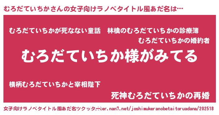 | 胡散臭い通販商品みたいなあだ名 | 『全米が絶賛したサプリメント…その名も「むろだていちか」』 |
