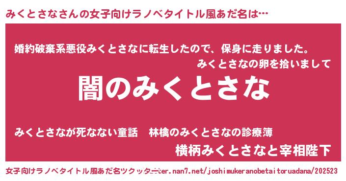 | 意味不明あだ名 | 『自称みくとさな』『永久保存みくとさな』 |
