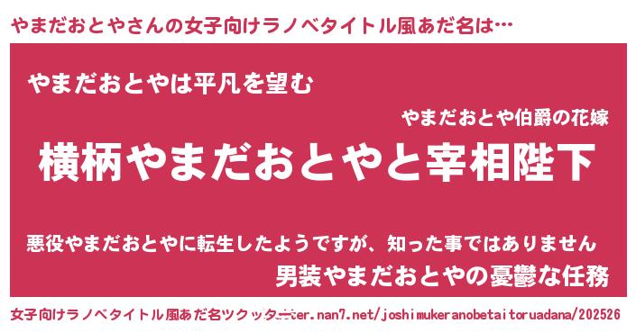 | 男性向けラノベタイトル風あだ名 | 『やまだおとやに滅ぼされるだけの簡単なお仕事です』 |