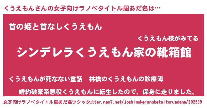 | 男性向けラノベタイトル風あだ名 | 『冴えないくうえもんの育てかた』 |