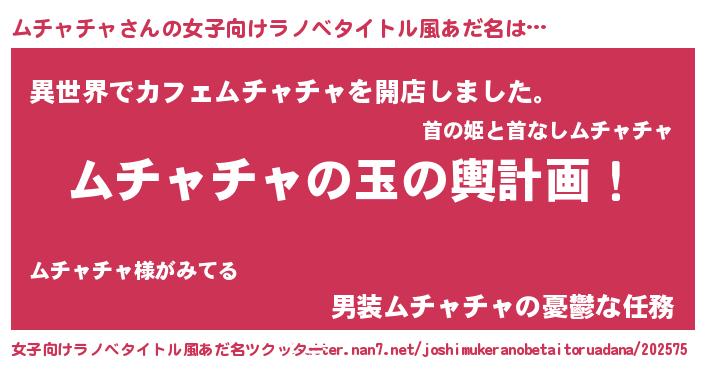 | 男性向けラノベタイトル風あだ名 | 『ムチャチャ~年齢イコール彼女いない歴の魔法使い~』 |