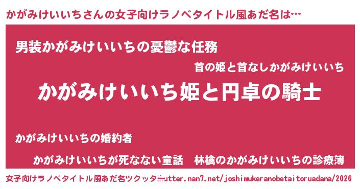 | 男性向けラノベタイトル風あだ名 | 『カガミケイイチアートオンライン』 |