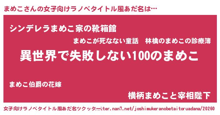 | 男性向けラノベタイトル風あだ名 | 『まめこという概念が存在しない退屈な世界 』 |