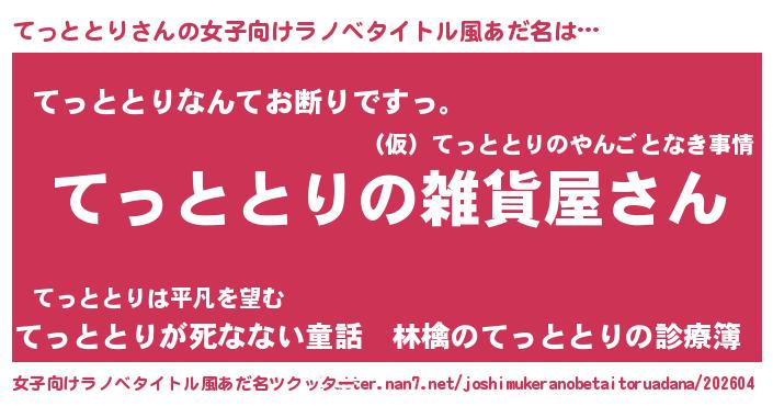 | ファンタジー風あだ名 | 『エターナルテットトリー』『ゼテットゥ』 |