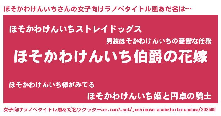 | 肩書あだ名 | 『ほそかわけんいち国家主席』 |
