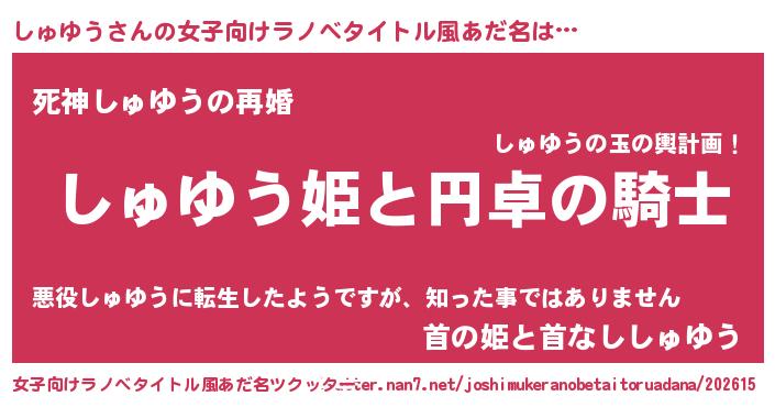 | 男性向けラノベタイトル風あだ名 | 『シュユウアートオンライン』 |