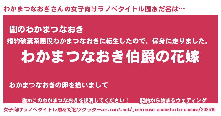 | 男性向けラノベタイトル風あだ名 | 『やはりわかまつなおきの青春ラブコメはまちがっている 』 |