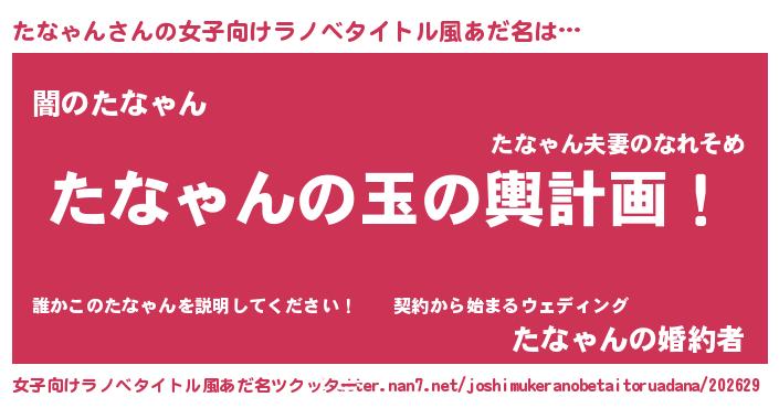 | 男性向けラノベタイトル風あだ名 | 『転生したらたなゃんだった件』 |