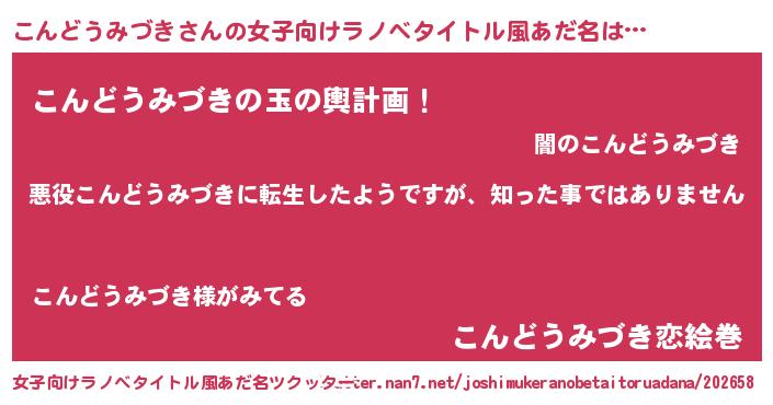 | 男性向けラノベタイトル風あだ名 | 『この素晴らしい世界にこんどうみづきを!』 |