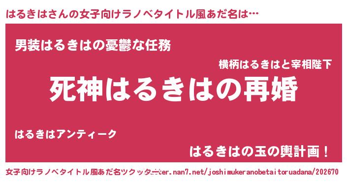 | 男性向けラノベタイトル風あだ名 | 『ノーゲーム・ノーハルキハ』 |
