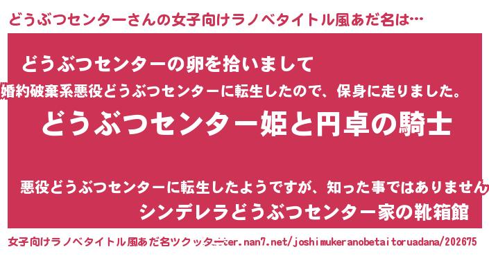 | 胡散臭い通販商品みたいなあだ名 | 『モテモテ間違いなしブレスレット…その名も「どうぶつセンター」』 |