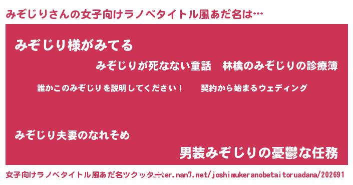 | 男性向けラノベタイトル風あだ名 | 『ミゾジリアートオンライン』 |