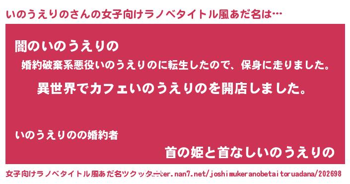 | 男性向けラノベタイトル風あだ名 | 『誰もが恐れるあのいのうえりのが、ぼくの専属メイドになるようです。』 |