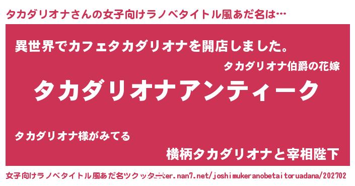 | 意味不明あだ名 | 『自称タカダリオナ』 |