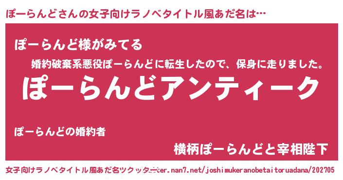 | 男性向けラノベタイトル風あだ名 | 『魔法科高校のぽーらんど』 |