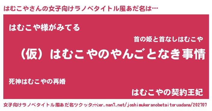 | 意味不明あだ名 | 『ペロリンはむこや』『永久保存はむこや』 |