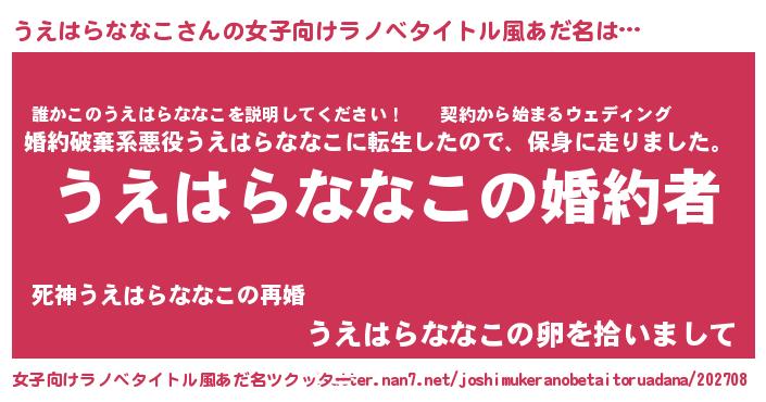 | 胡散臭い通販商品みたいなあだ名 | 『運命の人と巡り会える高級そうな皿…その名も「うえはらななこ」』 |