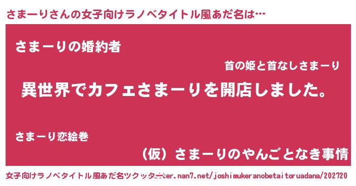 | ヒーロー風カッコイイあだ名 | 『ネオサマーリ』『ウルトラさまーりマン』 |