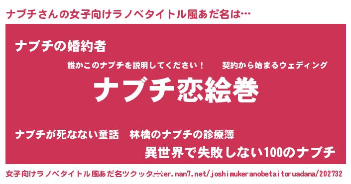 | ヒーロー風カッコイイあだ名 | 『愛の使者ナブチ』『ウルトラナブチマン』 |