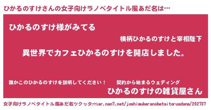 | 男性向けラノベタイトル風あだ名 | 『誰もが恐れるあのひかるのすけが、ぼくの専属メイドになるようです。』 |