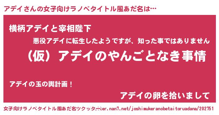 | 男性向けラノベタイトル風あだ名 | 『アデイの憂鬱』 |