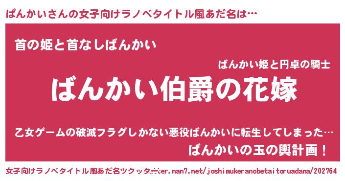 | ファンタジー風あだ名 | 『エターナルバンカイー』『バンフェル』 |