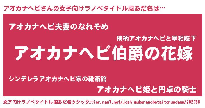 | 男性向けラノベタイトル風あだ名 | 『やはりアオカナヘビの青春ラブコメはまちがっている 』 |