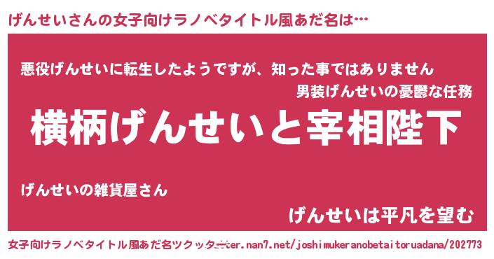 | 意味不明あだ名 | 『住所不定無職げんせい(4歳)』 |