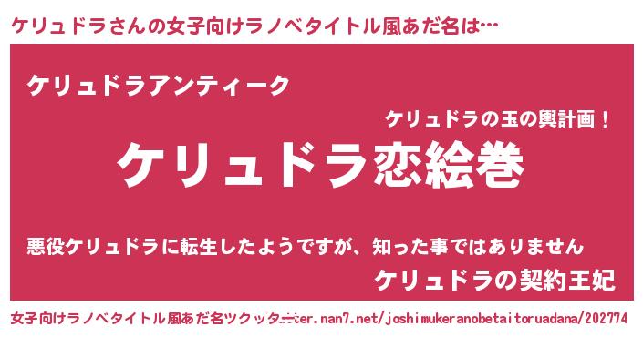 | 男性向けラノベタイトル風あだ名 | 『ノーゲーム・ノーケリュドラ』 |