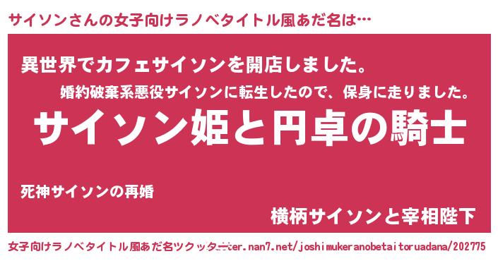 | 男性向けラノベタイトル風あだ名 | 『サイソンの憂鬱』『サイソンスレイヤー』 |