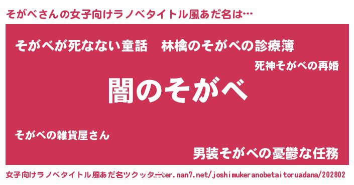 | 男性向けラノベタイトル風あだ名 | 『Re:そがべから始める異世界生活』 |