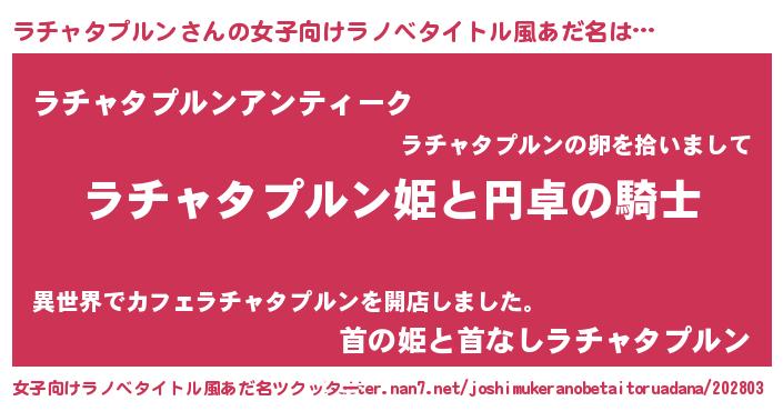 | 男性向けラノベタイトル風あだ名 | 『ラチャタプルンの憂鬱』 |