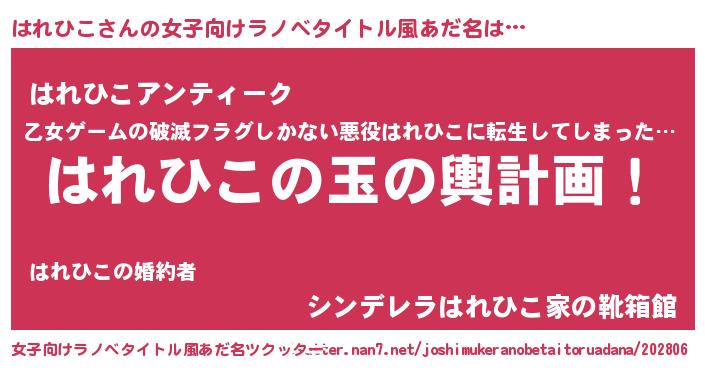| 男性向けラノベタイトル風あだ名 | 『転生したらはれひこだった件』 |