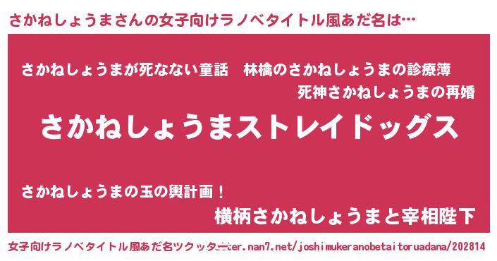 | 意味不明あだ名 | 『自称さかねしょうま』 |