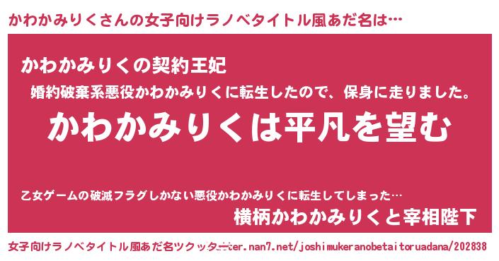 | 料理風あだ名 | 『かわかみりくの豆乳スープ』 |